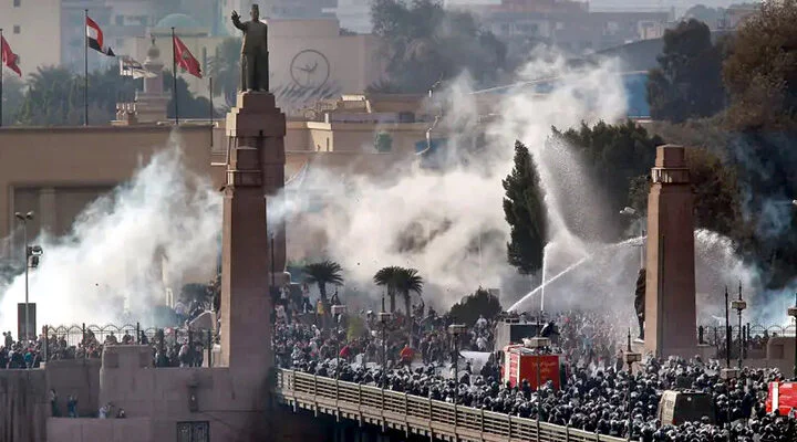 مع إصرار المحتجين على الوصول إلى ميدان التحرير، بدأت مرحلة إطلاق خراطيم المياه وقنابل الغاز المسيل للدموع، ثم تطور الأمر بعد ذلك إلى الرصاص المطاطي والحي، واستمرت المعركة في ميدان رمسيس لساعات بين قوات الأمن والمتظاهرين الذين حاولوا التماسك. وتكرر نفس السيناريو عند مسجد النور بميدان العباسية لمنع وصول المتظاهرين القادمين من مصر الجديدة ونواحيها. وفي مدينة نصر، حاول المتظاهرون الوصول إلى القصر الجمهوري في مصر الجديدة لكن قوات الأمن اعترضتهم بقوة، فحولوا وجهتهم إلى ميدان التحرير ليلتحموا بالباقين المحتجزين عند مسجد النور في العباسية، فاستطاعوا كسر الحاجز الأمني ليستمروا في طريقهم إلى التحرير.